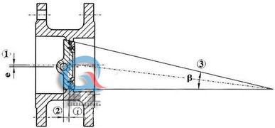 當(dāng)閥門開(kāi)啟時(shí),蝶板與閥座在關(guān)閉時(shí)接觸,利用蝶板偏心1、偏心2脫離閥座,減低了密封副的磨損,磨擦力矩小,開(kāi)啟靈活。偏心錐面3,使閥門在開(kāi)啟或關(guān)閉時(shí)蝶板能通過(guò)閥座內(nèi)孔,實(shí)現(xiàn)接觸密封。另外,錐形蝶板的旋轉(zhuǎn)半徑大于密封副接觸位置的旋轉(zhuǎn)半徑,故蝶板在閥門關(guān)閉時(shí)將出現(xiàn)越關(guān)越緊,能夠?qū)崿F(xiàn)自鎖,制止蝶板過(guò)位。